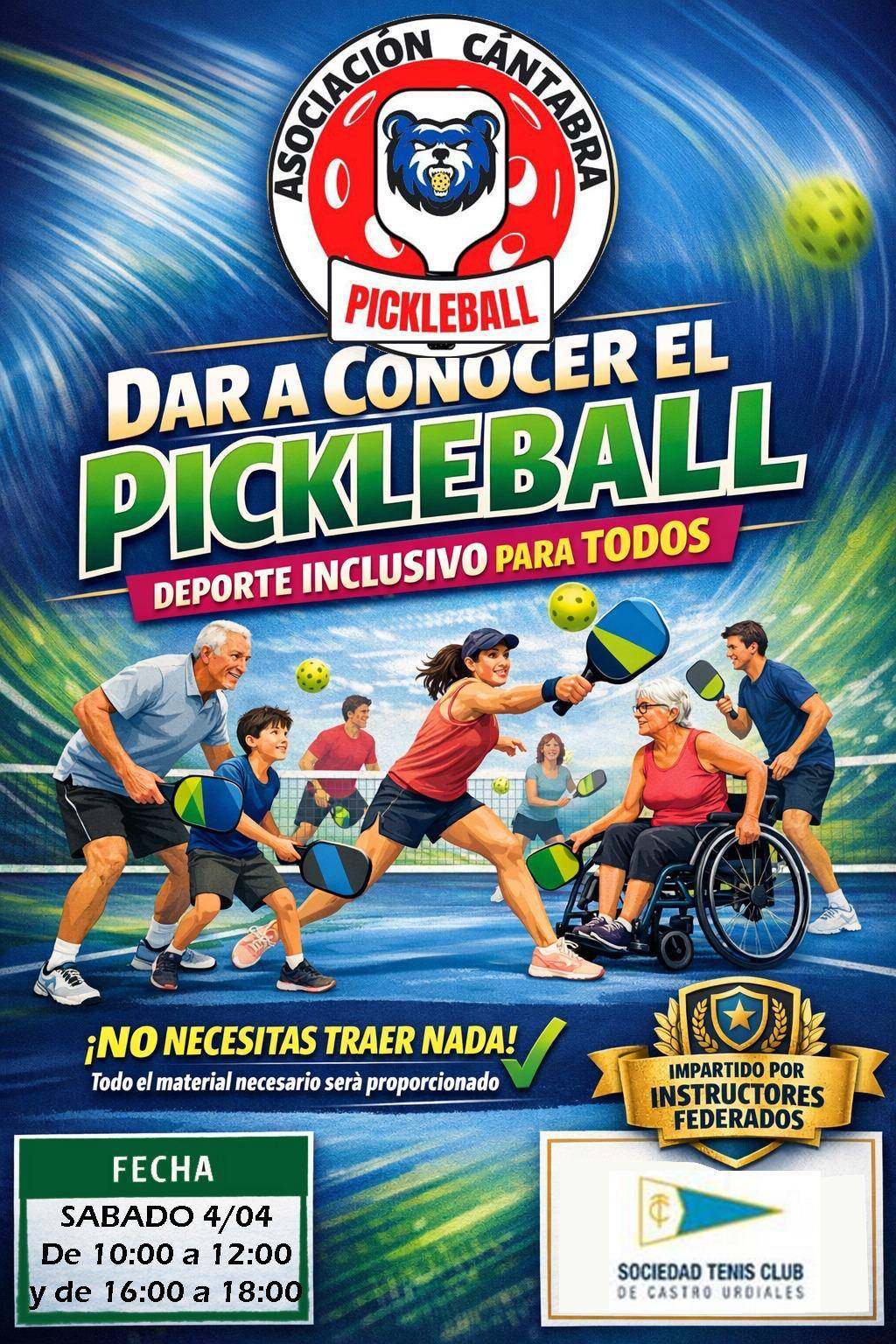 El próximo 4 de abril te invitamos a descubrir el Pickleball, una disciplina divertida, dinámica y súper accesible… ¡que engancha desde el primer punto! 🙌